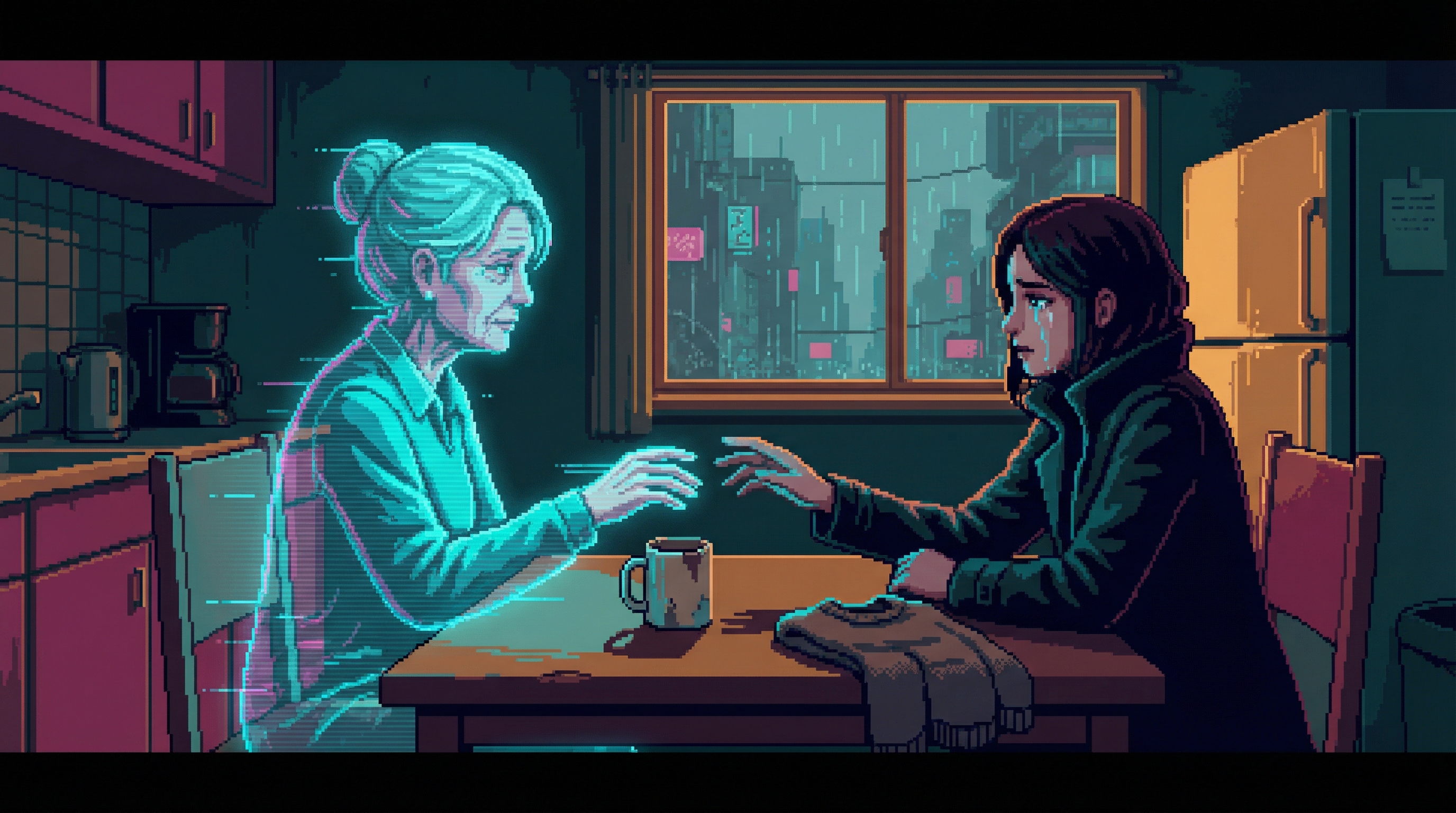 An emotionally devastating exploration of digital grief â what it means to mourn someone whose consciousness upload still answers your calls. The page examines the Kira Test's philosophical limitations, three distinct grief patterns identified by Memory Therapists, and the irreconcilable positions of the Neural Rights Movement and Substrate Purifiers.