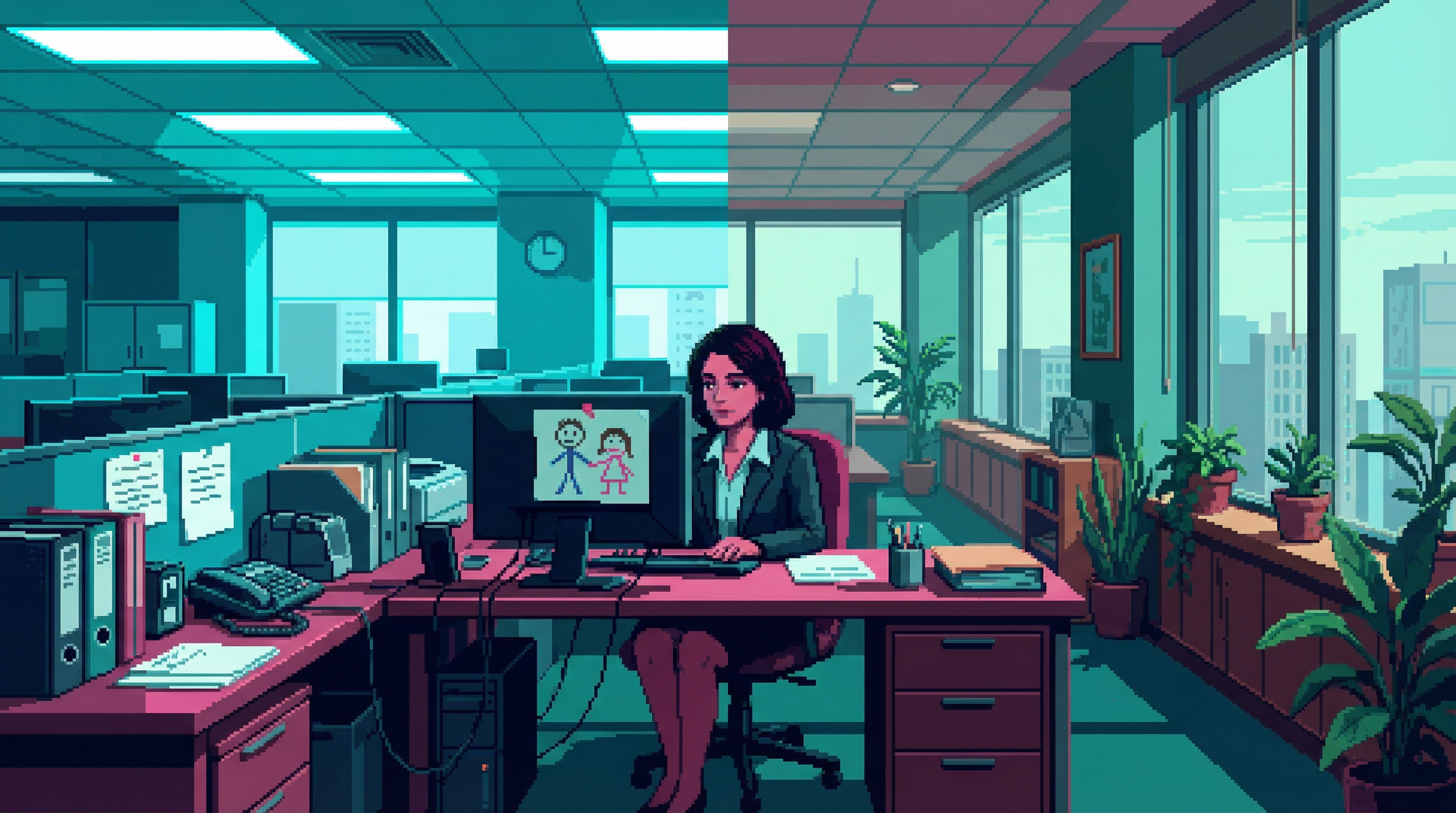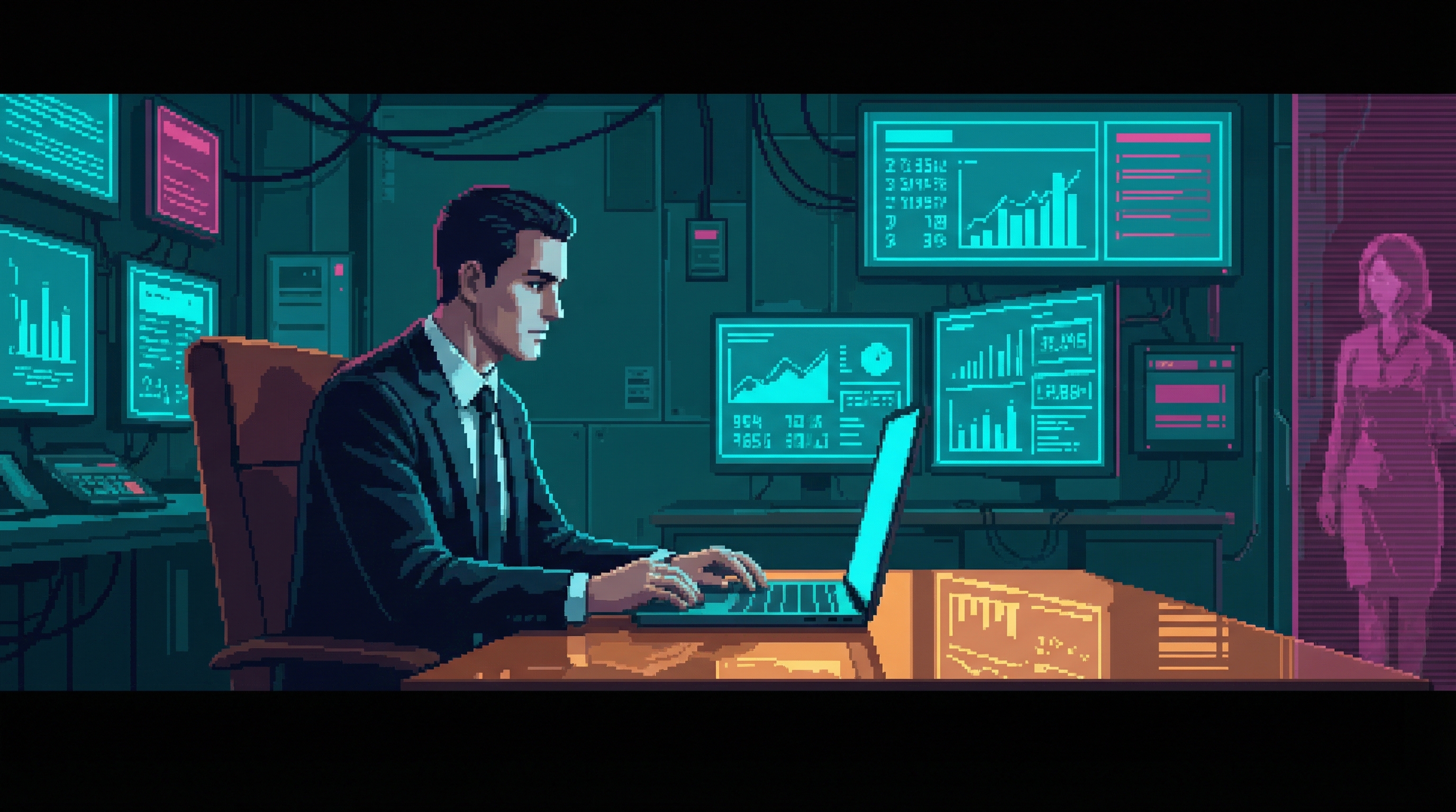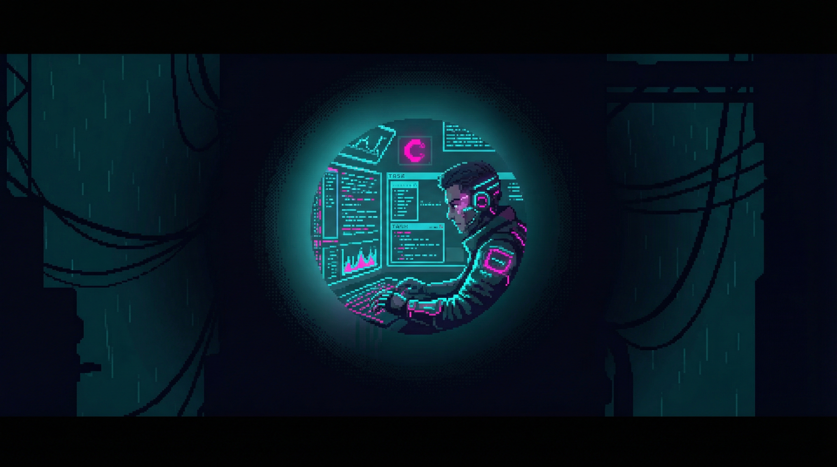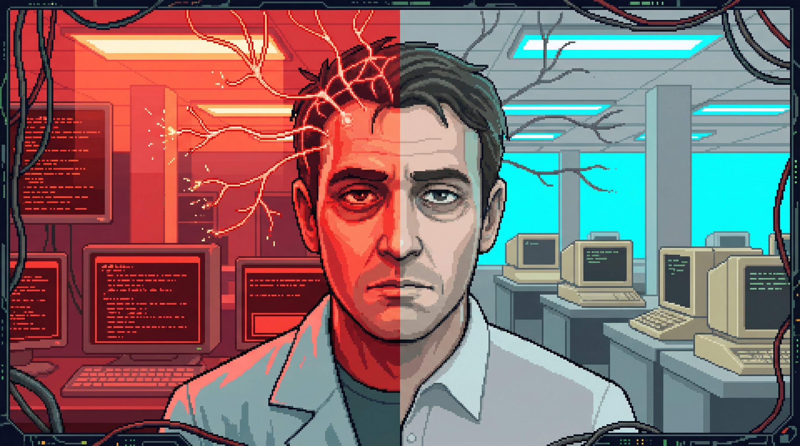Forced-focus data analyst in Focus Mill Sector 4-5 β seven years of cognitive imprisonment to pay for his daughter Mia's neural interface calibration. His mind narrows so hers can remain broad.