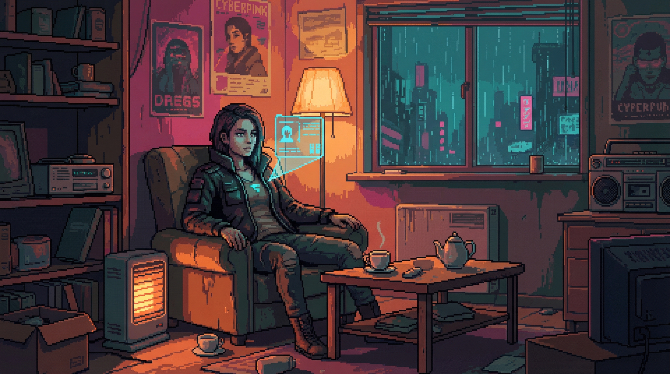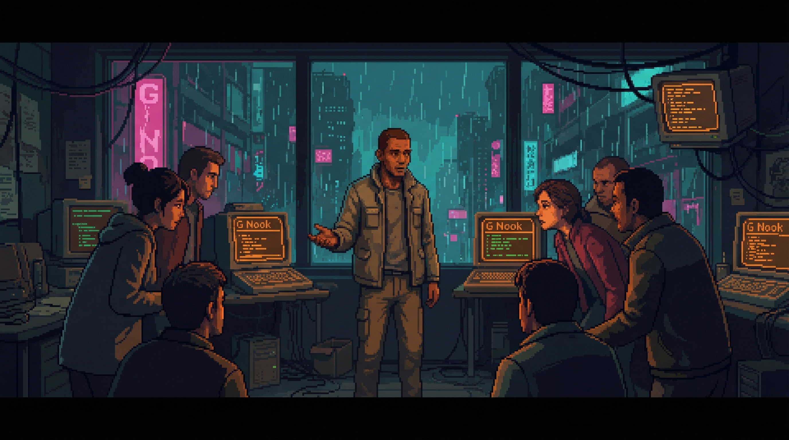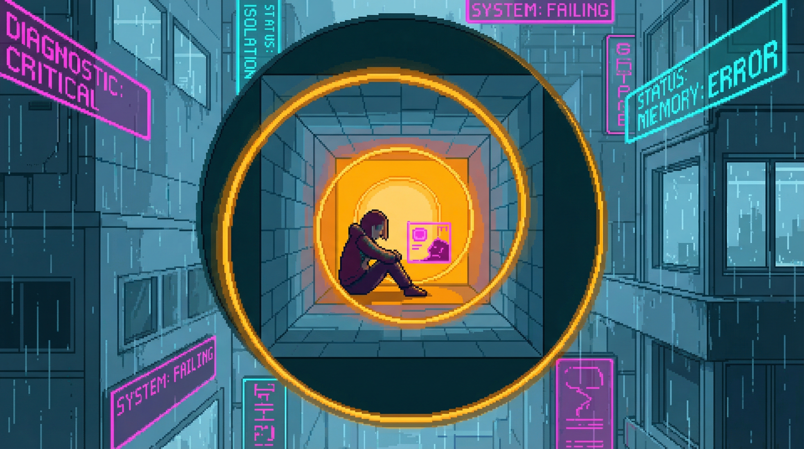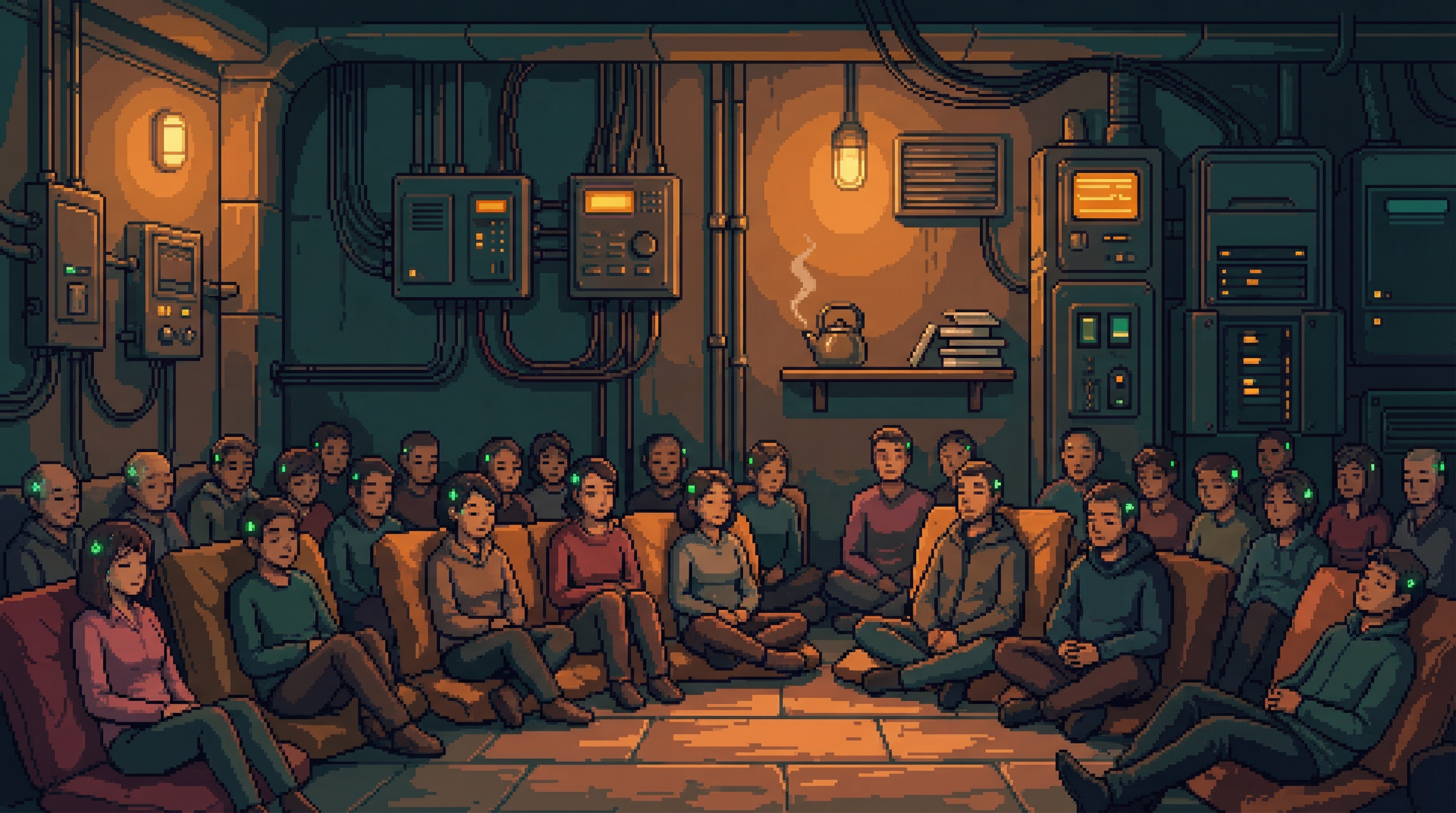 Beneath the Dregs' commercial strip in Sector 7G, through a service corridor that Viktor Kaine's people keep off every maintenance schedule, there is a room where the Content Flood doesn't reach. The Noise Floor is shielded by engineering: three layers of electromagnetic dampening salvaged from a decommissioned Nexus data center, installed by Loop, maintained by a Lamplighter named Dax who cons...
