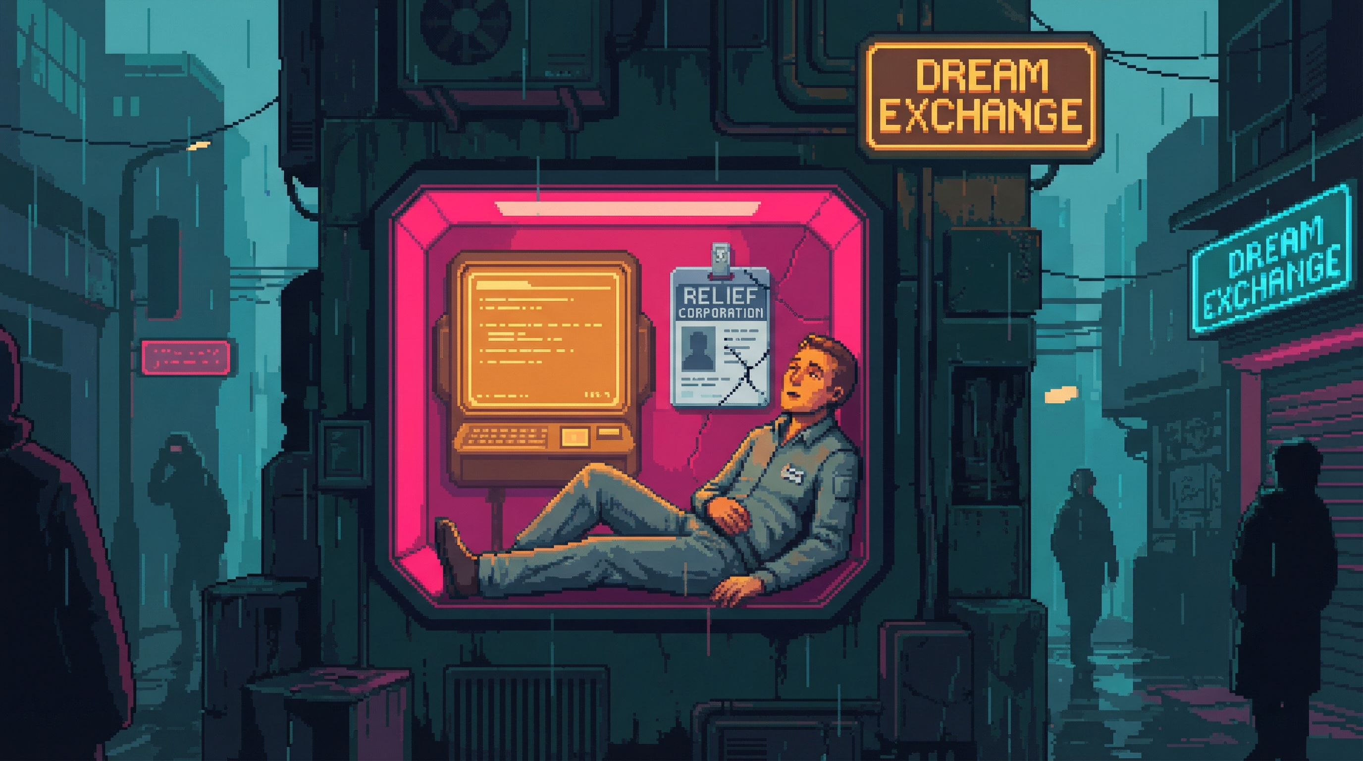 Former Relief Stream entertainment director turned dream addict. Designed the Somnolence feed line that audiences consistently rejected, then discovered why by experiencing a genuine harvested dream. Now spends 60% of his income on harvested dreams in the Dregs.