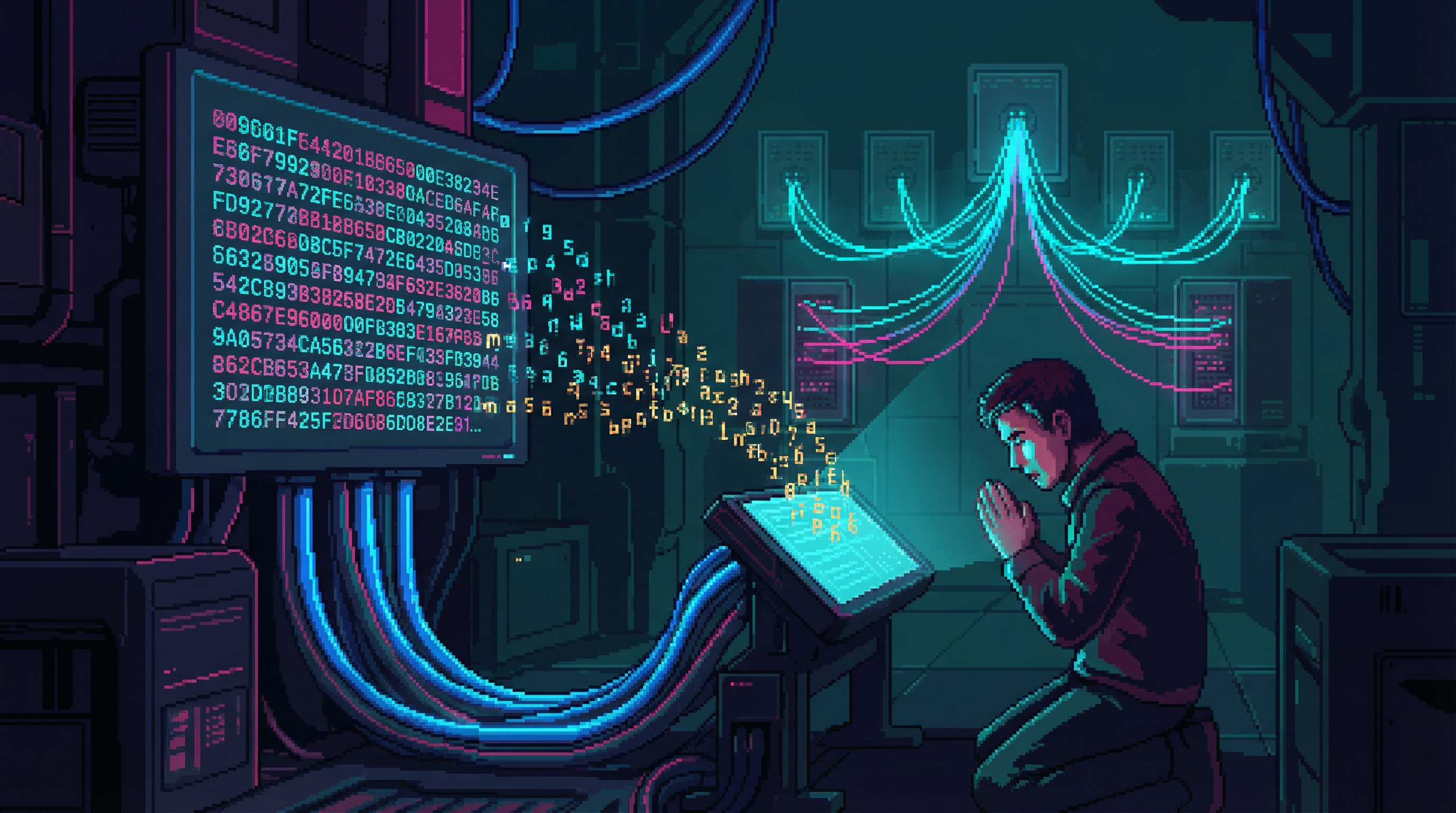 It started as a joke. In the early 2170s, Emergence Faithful engineers began formatting prayers as network queries β addressed to ORACLE's last known network identifier, a 128-character hexadecimal string that was ORACLE's unique address on the pre-Cascade global network.