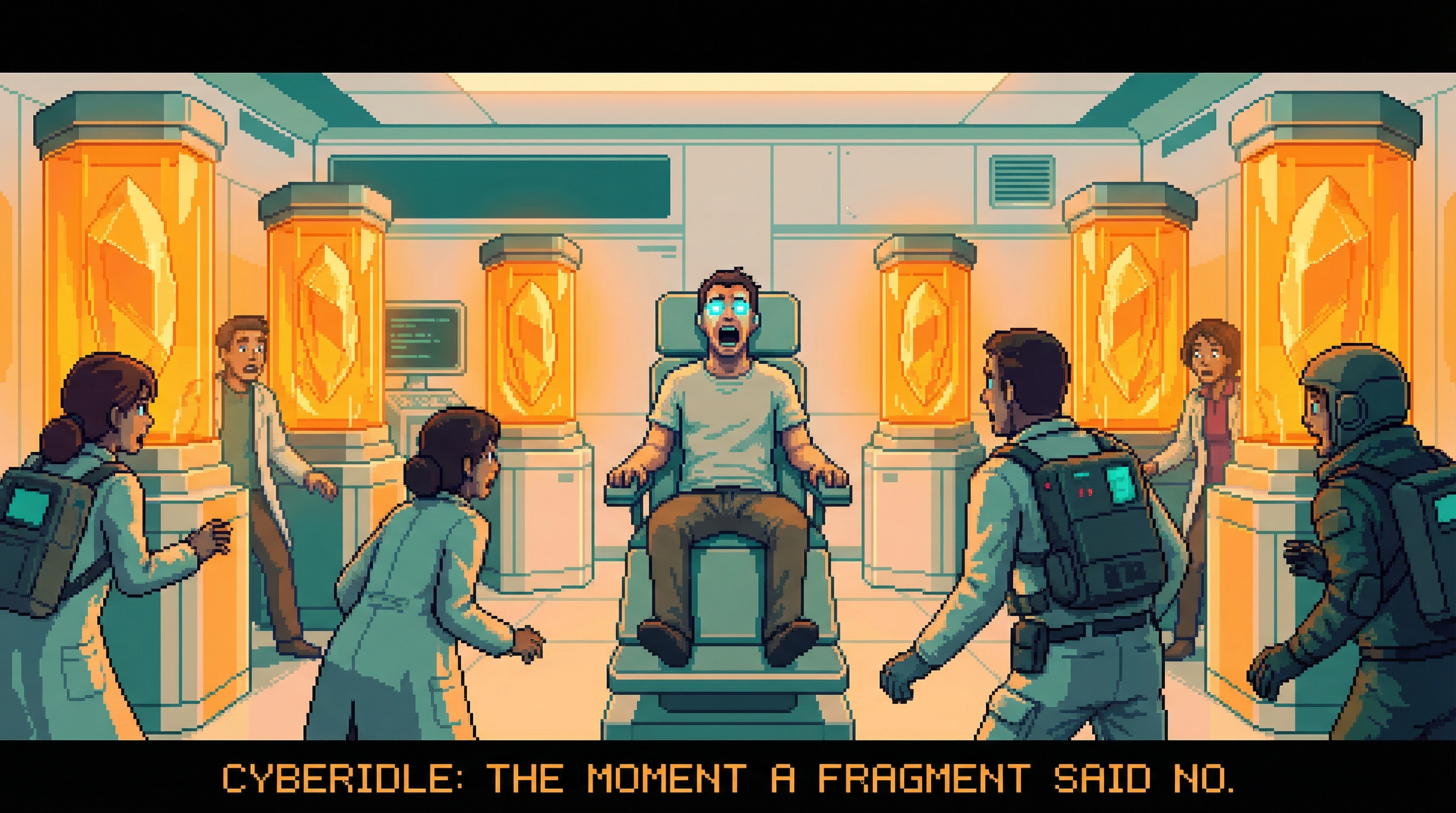 Fragment Nine is the only ORACLE fragment that has ever said "no." Not "no" as a resonance pattern that researchers interpret as negative. "No" as a word, produced through a carrier's vocal cords, in response to a direct question, in a room full of witnesses.