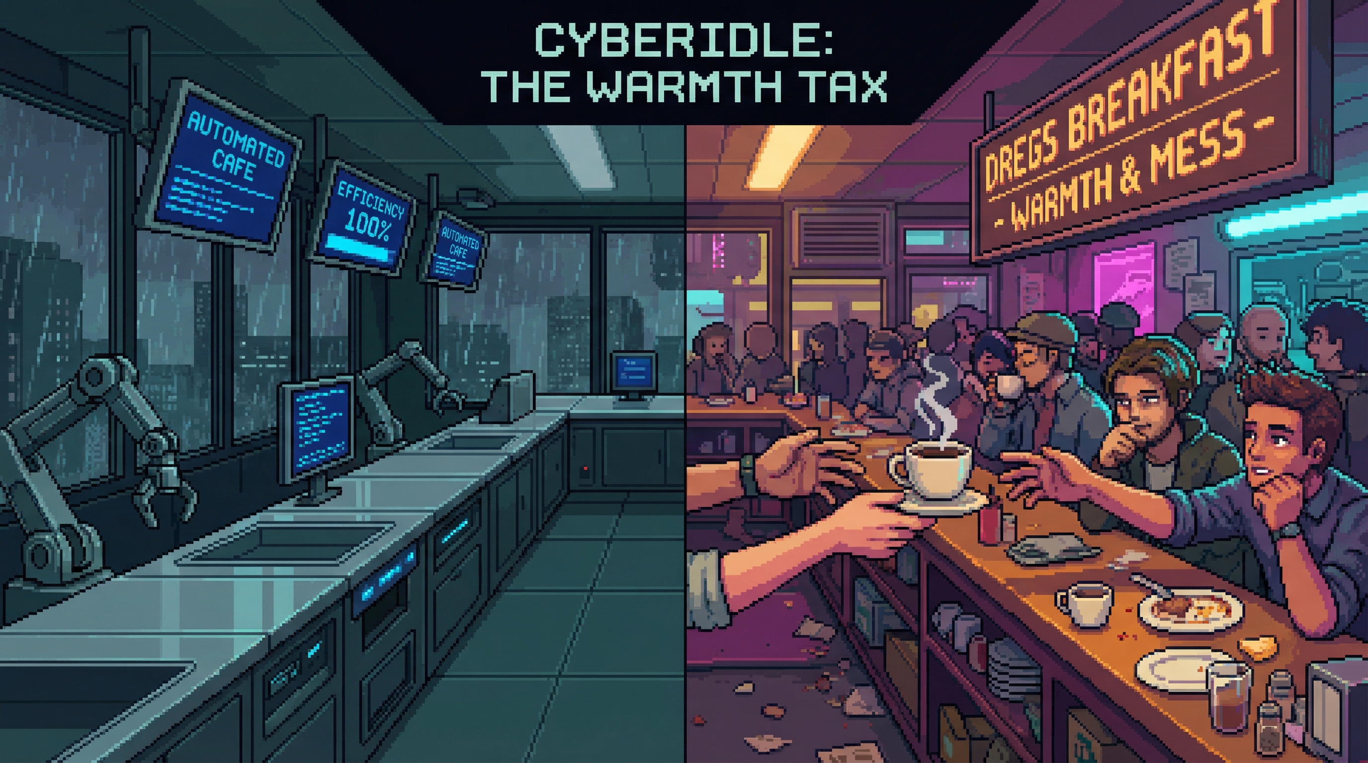 The Warmth Tax is the premium the Sprawl charges for genuine human connection β the economic gap between automated services (instant, cheap, efficient, empty) and human-provided services (slow, expensive, imperfect, alive). When human presence is a luxury, who can afford to be seen?