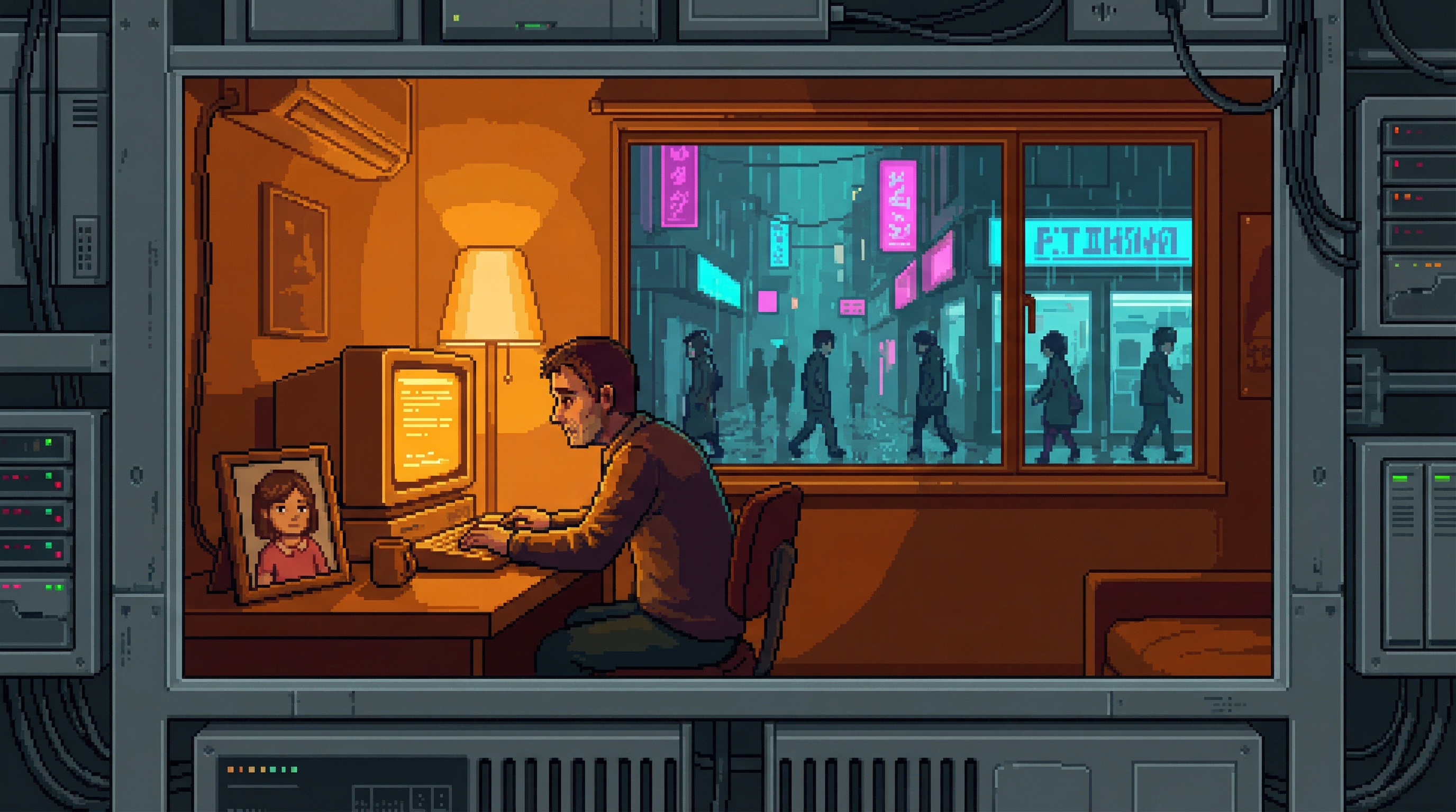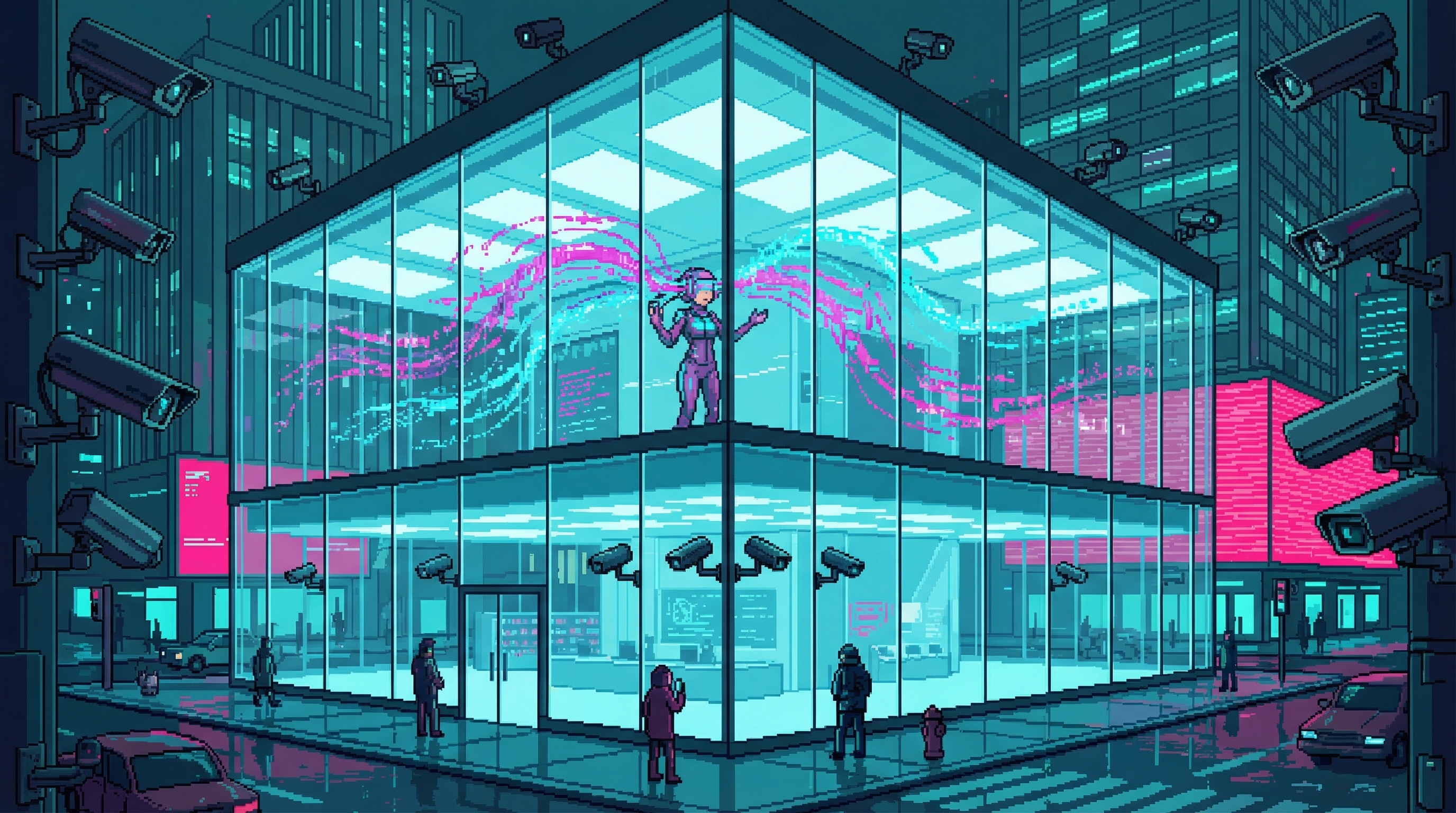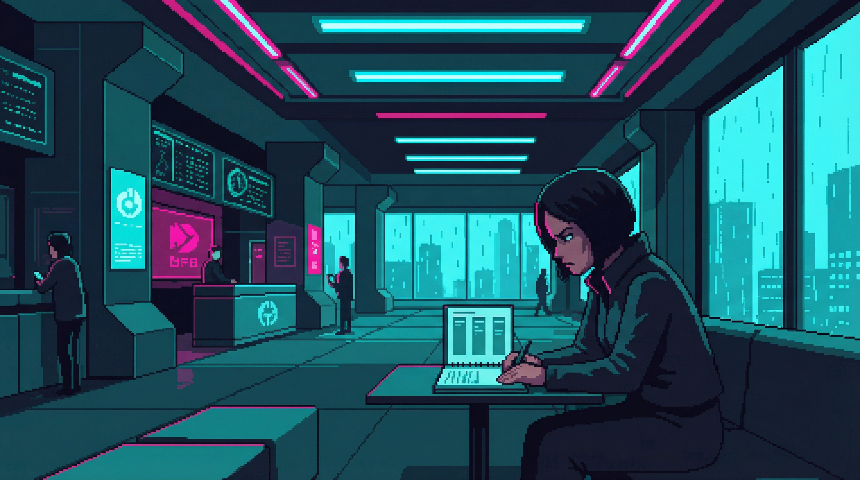 On the 38th floor of Good Fortune's Sector 4D tower — directly above Server Farm 14, close enough to feel the 72-bpm hum through the floor — twelve traders sit in a room that smells of recycled air and process the Sprawl's most consequential commodity: the right to redirect compute. The Processing Floor is where the Cognitive Exchange's abstractions become physical reality.