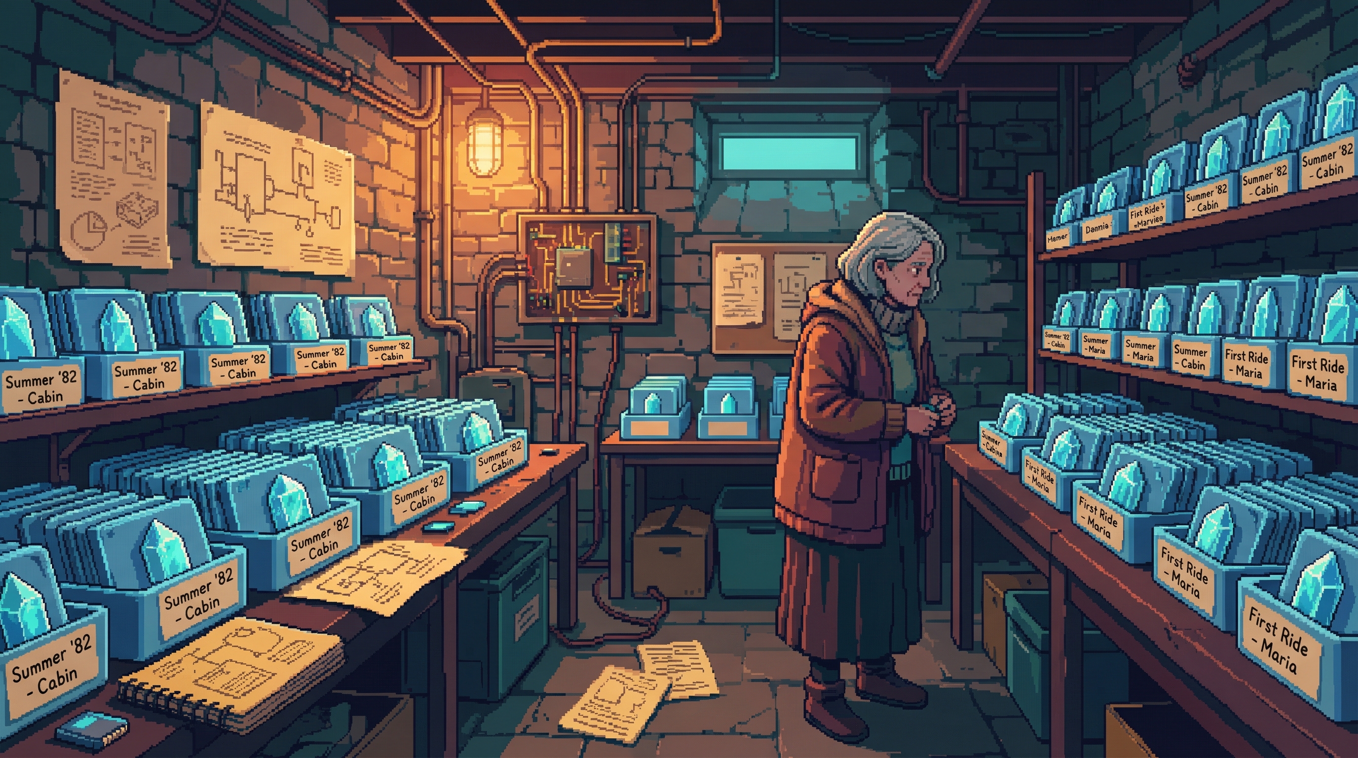 A 63-year-old former Consciousness Archaeologist who maintains the Sprawl's most unusual collection: 14,000 commercially valueless memories of ordinary experience — a man eating breakfast alone, a woman waiting for a bus, the specific quality of boredom at 2:47 PM. In a market that values peaks, she preserves valleys.