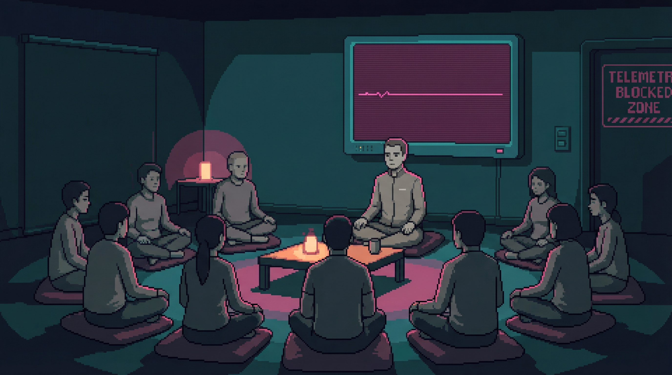 The Data Hygiene Corps teaches people to be boring. The Corps — approximately 400 active practitioners — trains behavioral obfuscation techniques: mental disciplines that flatten emotional signatures, social practices that reduce telemetry value, and physical habits that generate model interference.