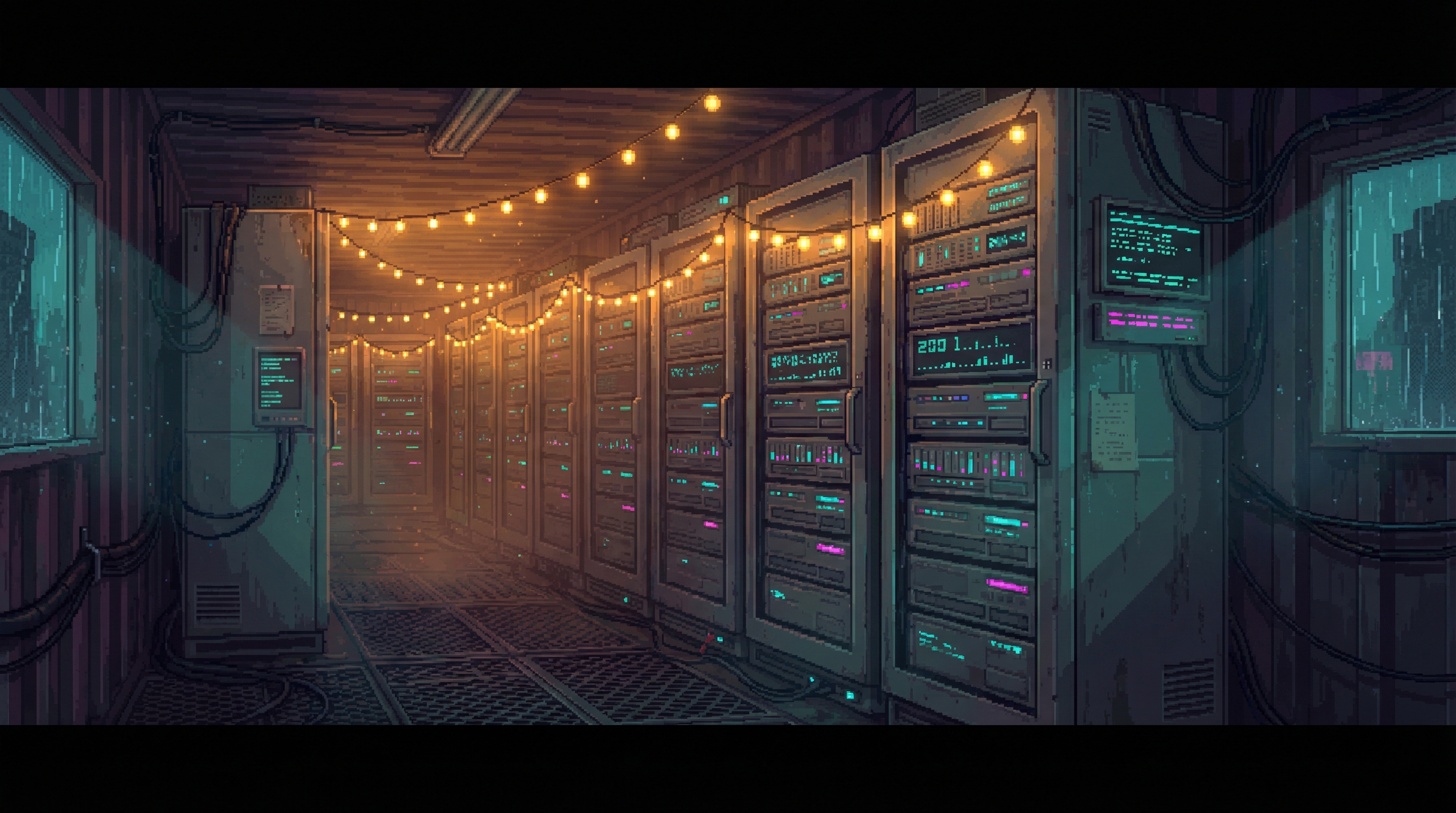 Server Farm 14 sits at the heart of the Lattice's primary processing hub, seven sub-levels below the Cognitive Exchange. It is the single largest concentration of processing infrastructure in the Sprawl — 4,200 square meters of crystalline substrate arrays, arranged in concentric rings around a central cooling core that draws 8% of the Grid's total output.