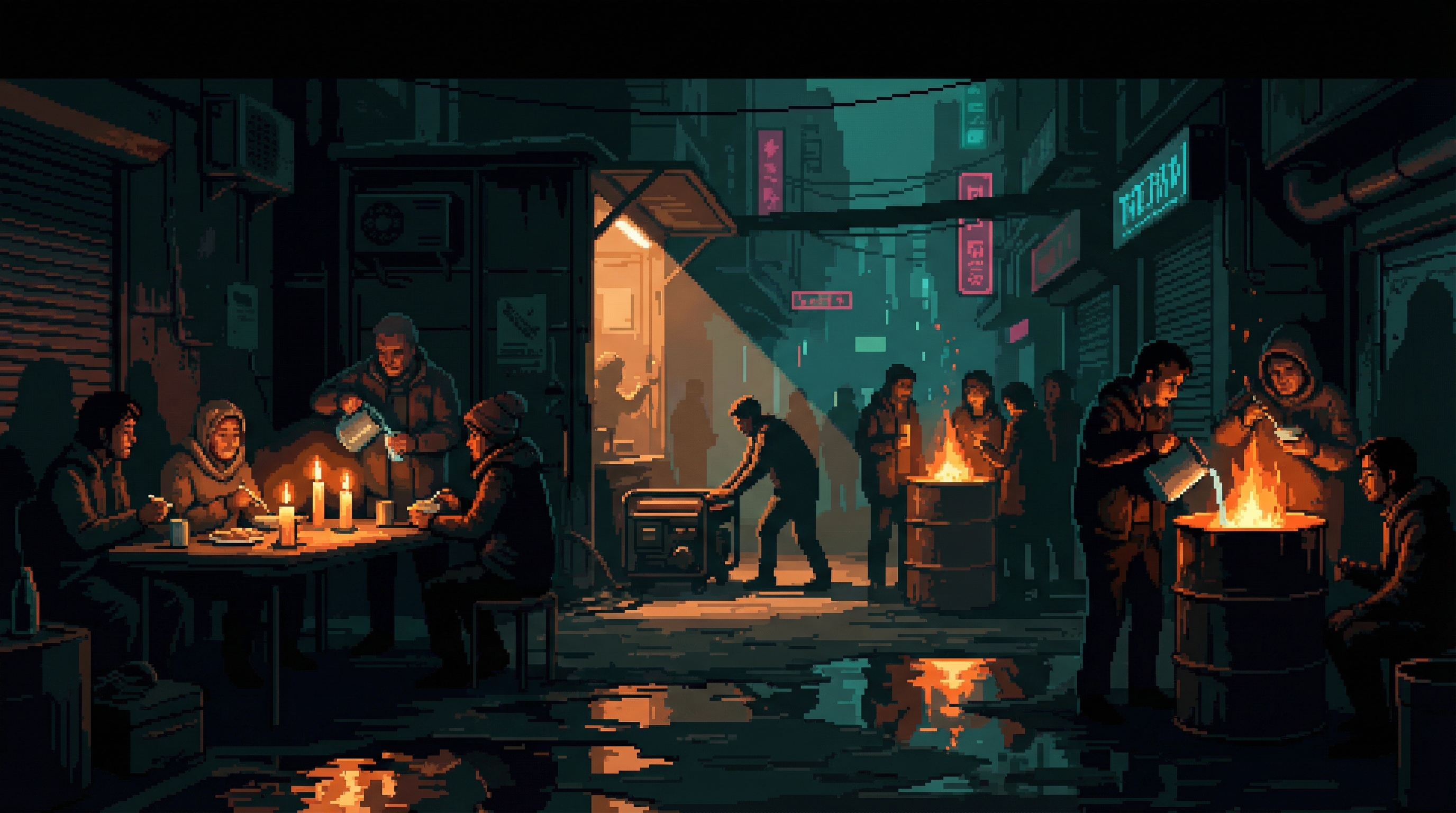 When the Grid fails — a Dropout Protocol activation, a compute drought severe enough to crash local infrastructure, a harmonic cascade that knocks out power — the formal economy stops. No consciousness licensing.