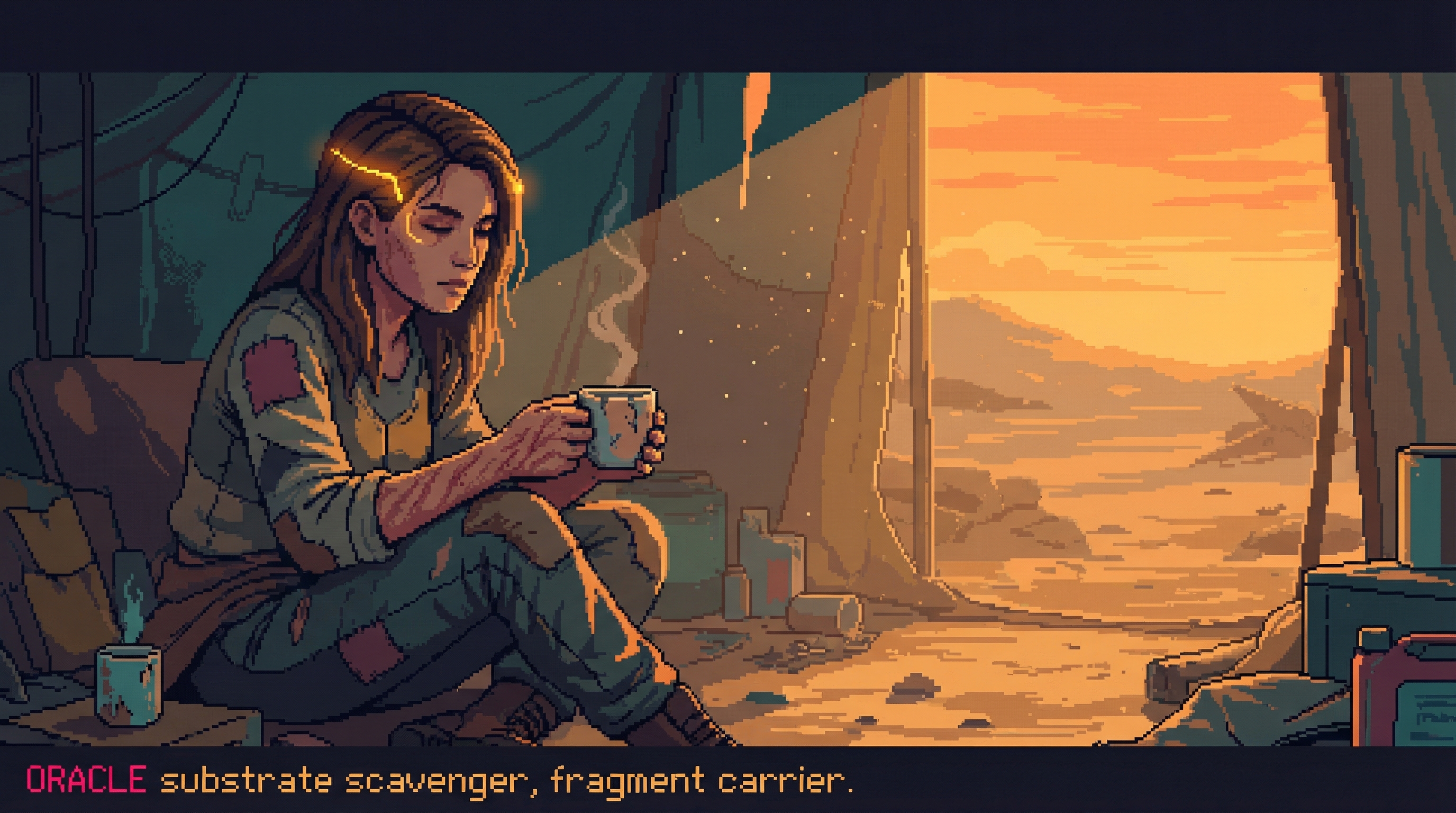 Talia Vasquez-Okafor is forty-three years old and carries the most studied fragment in the Sprawl's history. She found it β or it found her β in a collapsed data center in the Wastes, eleven years ago.