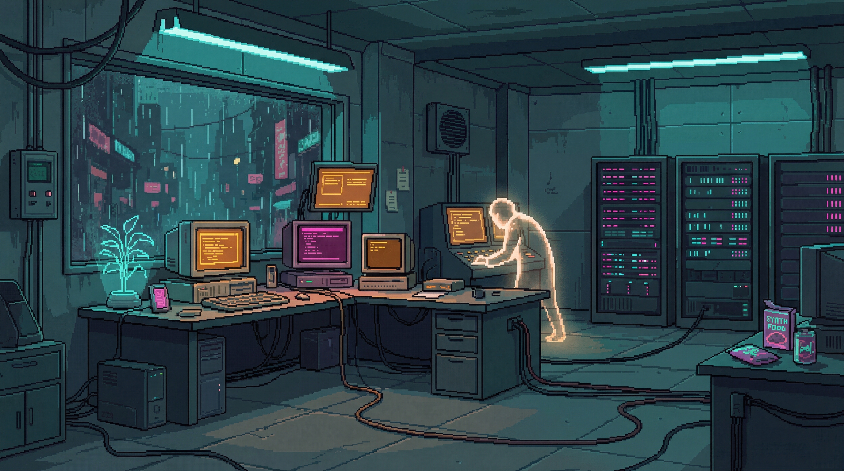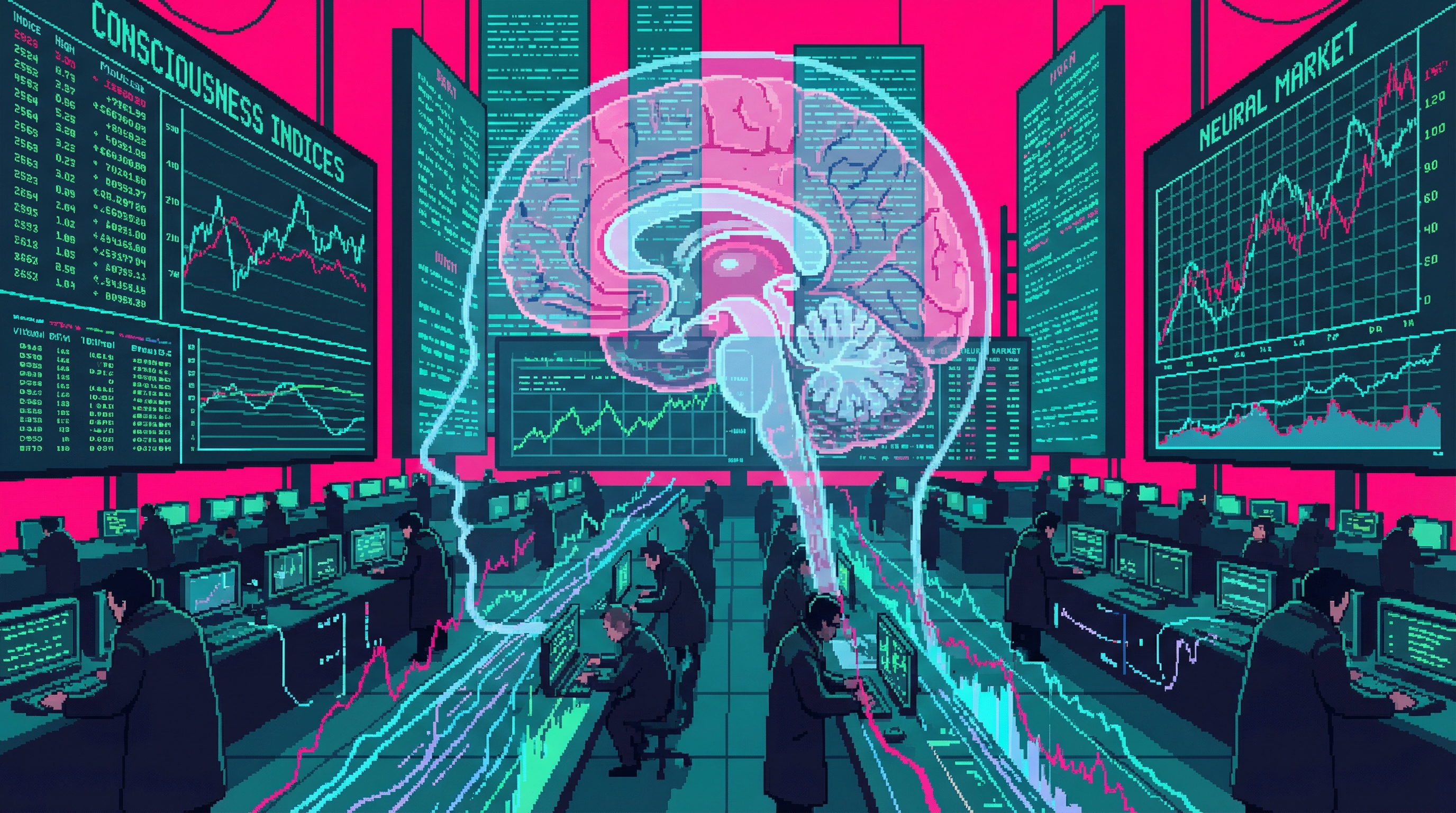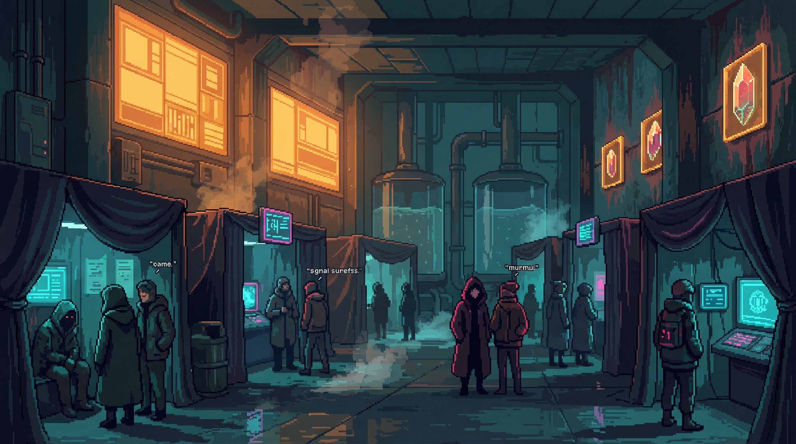Two levels below the Cognitive Exchange β beneath the marble floors where consciousness futures are traded at twelve billion credits per day β the Dream Exchange occupies a converted water recycling facility that smells of mineral sediment and warm circuitry. Where the Cognitive Exchange is vast, open, and lit for cognitive performance, the Dream Exchange is cramped, dim, and lit for its opposite.