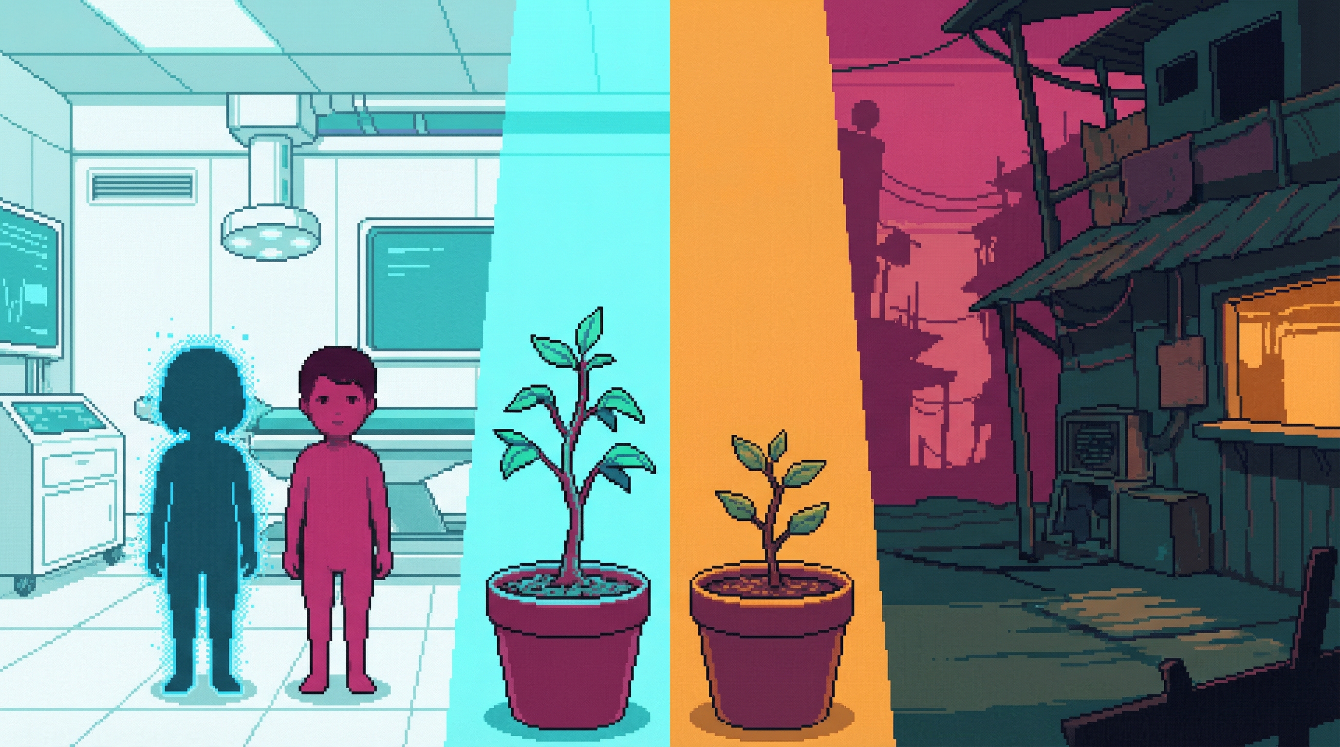 The most insidious axis of the New Divide: the growing gap between designed children and the natural-born. Genetic optimization β commercially available since the 2150s, widely adopted in corporate territories by the 2170s β creates advantages that are permanent, inheritable, and invisible.