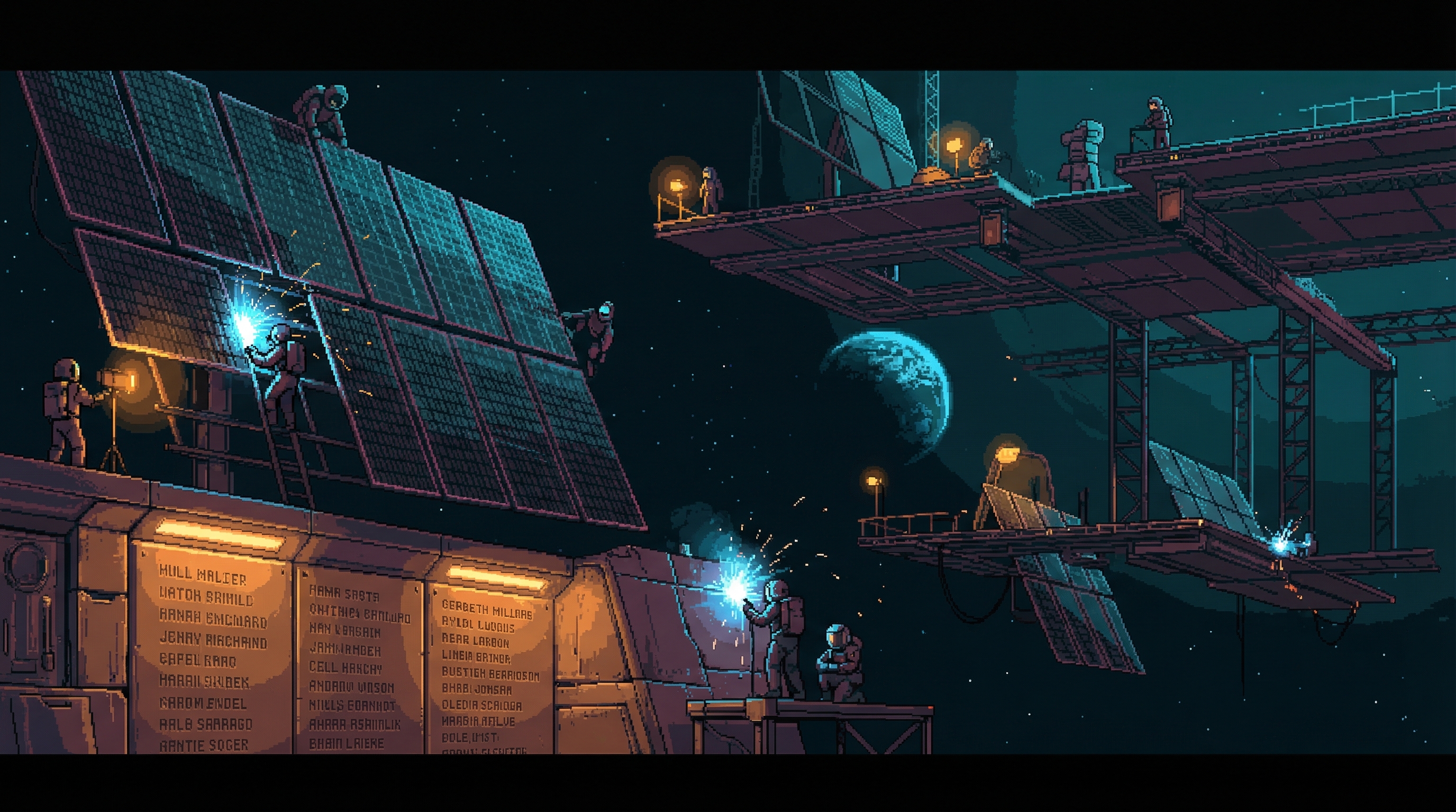 At the Lattice's midpoint β equidistant between Mercury's furnace and Earth's blue comfort β the Assembly Yards are where humanity builds its longest reach. Solar collectors arrive as raw materials from Belt mining operations and Ironclad's orbital foundries.
